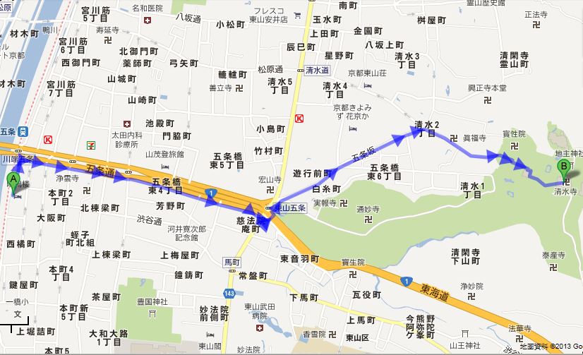 五條通向東步行約1.8km,就是京都超級著名的景點【清水寺】,賞楓賞櫻參拜等人潮絡繹不絕,如果下榻晴鴨樓的人可別錯過。