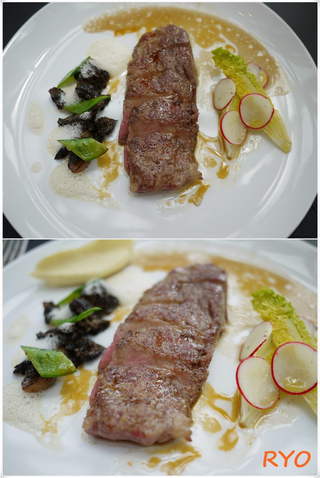 肉類:香煎西班牙黑豚肉伴羊肚菇,新薯及荷蘭豆