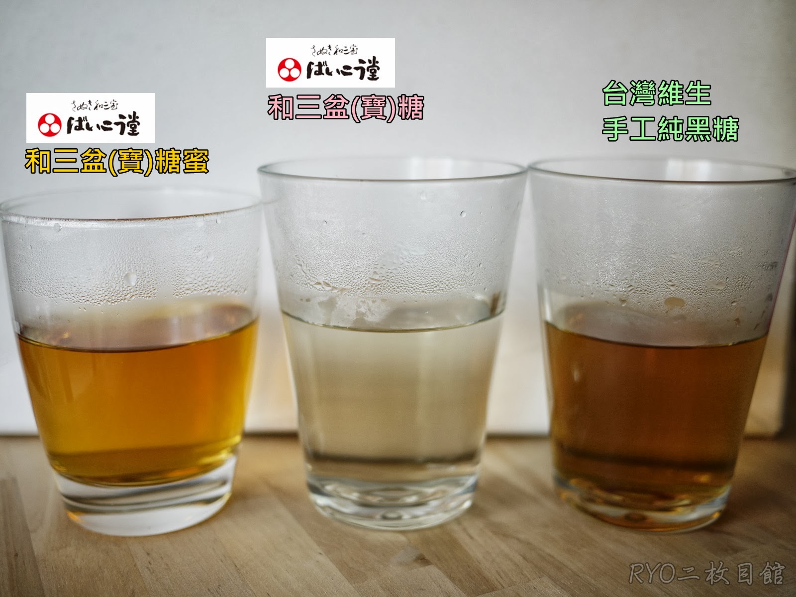 品嚐後感想,台灣黑糖是我們熟悉喝慣的黑糖口味,這是當然的廢話;和三盆(寶)糖無特殊氣味,但帶有微甜口感,相較而言,台灣黑糖甜味較微濃厚;不過最讓我意外的是和三盆(寶)糖蜜,沖泡後的糖水竟有稍微強烈的酒精味,趕緊拿起糖蜜罐子確認材料,除了和三盆糖與和三盆糖糖蜜之外,也添加了水飴與酒精,據老婆大人指導,她說糖蜜需要發酵,因此有酒精味是正常的。無論如何,以糖水來說,酒精味強過甜味讓我感到震驚!