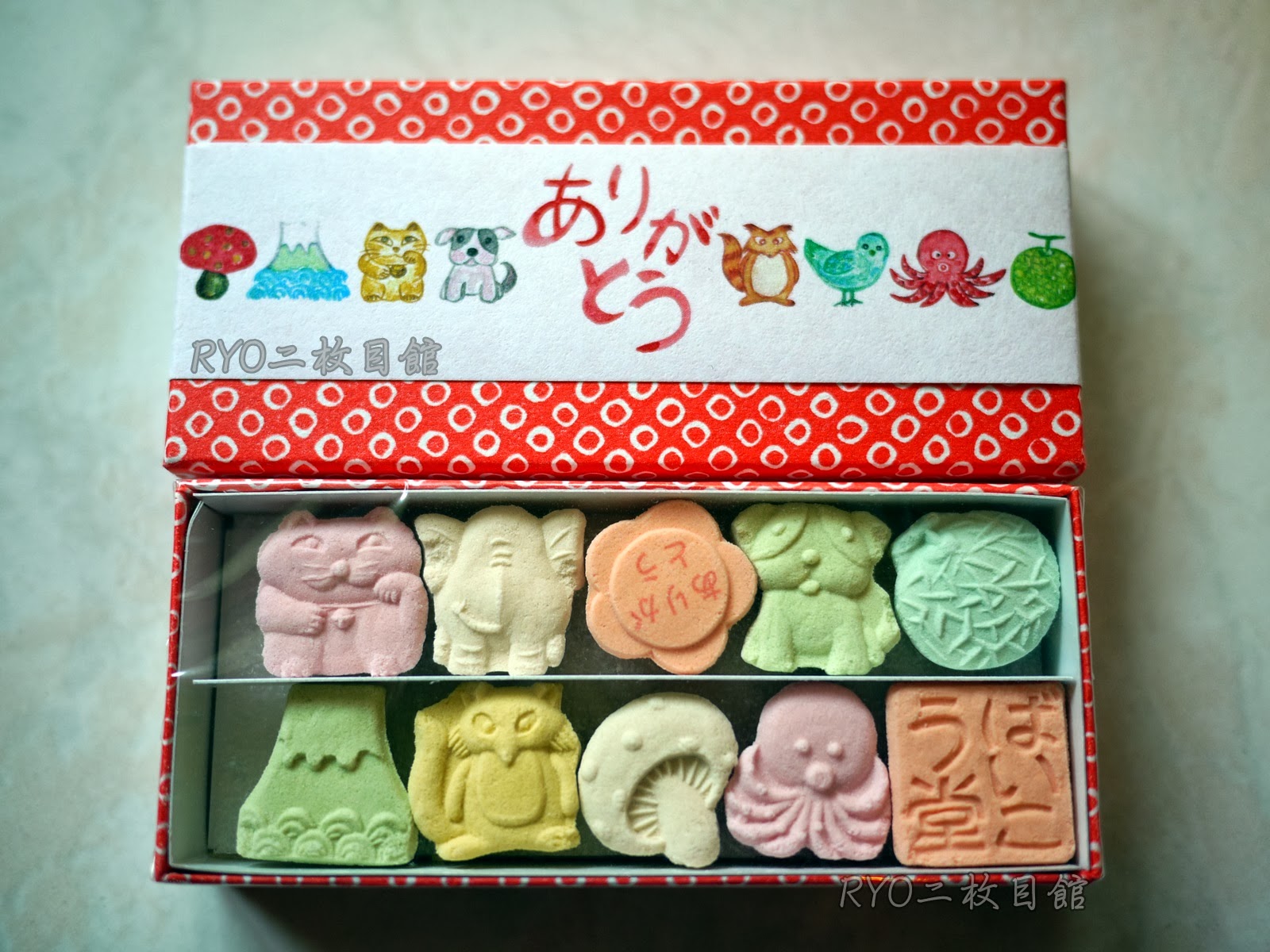 又附上她們自家乾菓子產品作為隨箱贈禮,和三盆糖做成霰糖、乾菓子,也是日本人購買三盆糖作為過節致贈親朋好友的贈禮選項之一。