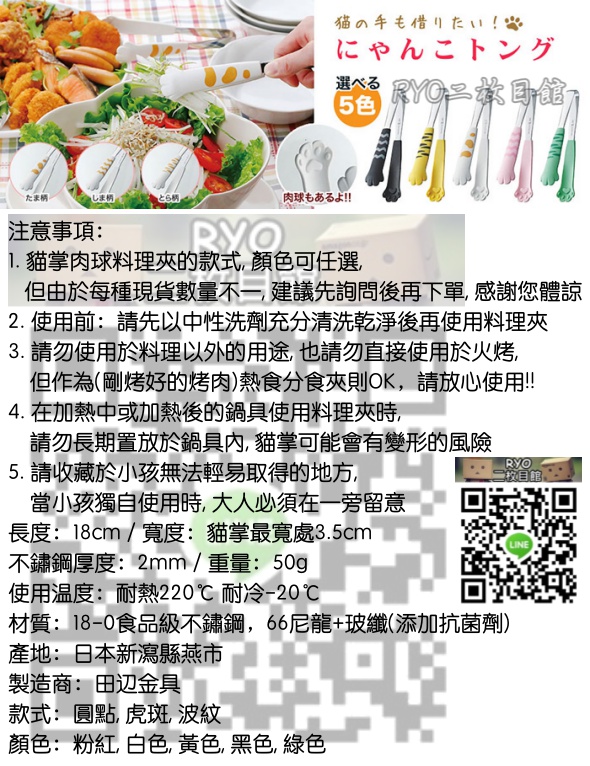 田辺金具不僅製造生產貓掌肉球料理夾, 且取得了該商品的專利權
